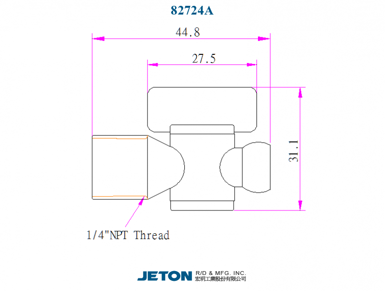 Ventil NPT JETON o velikosti 1/4" - samice.