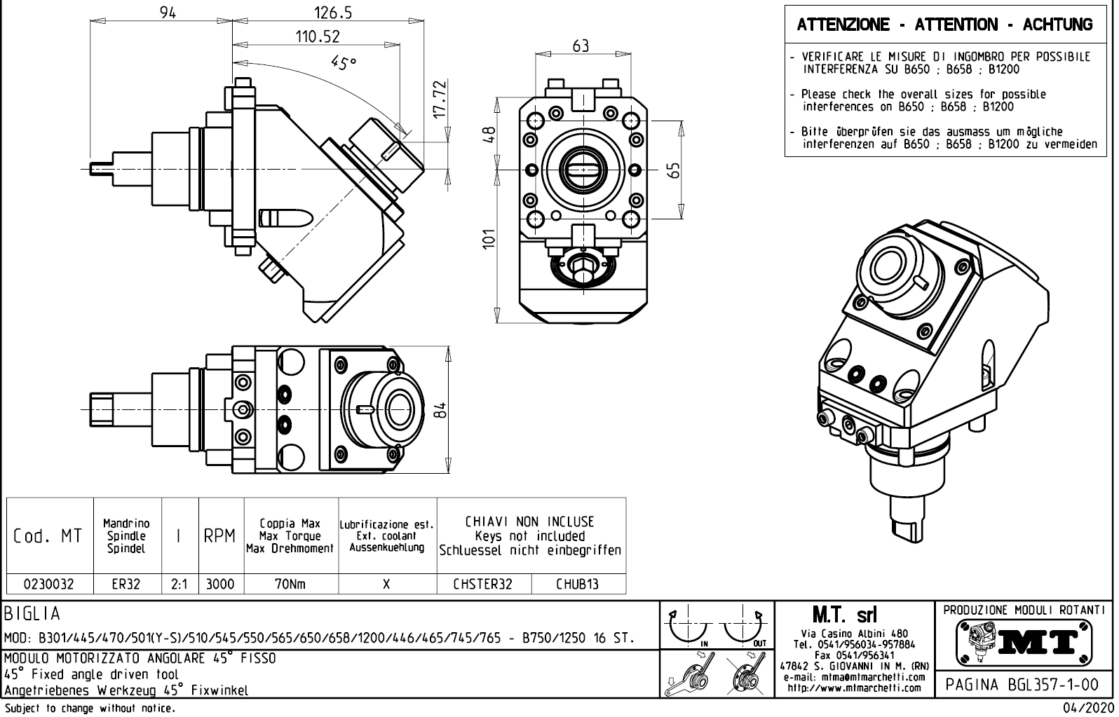 - Biglia - série BV 210 / 315