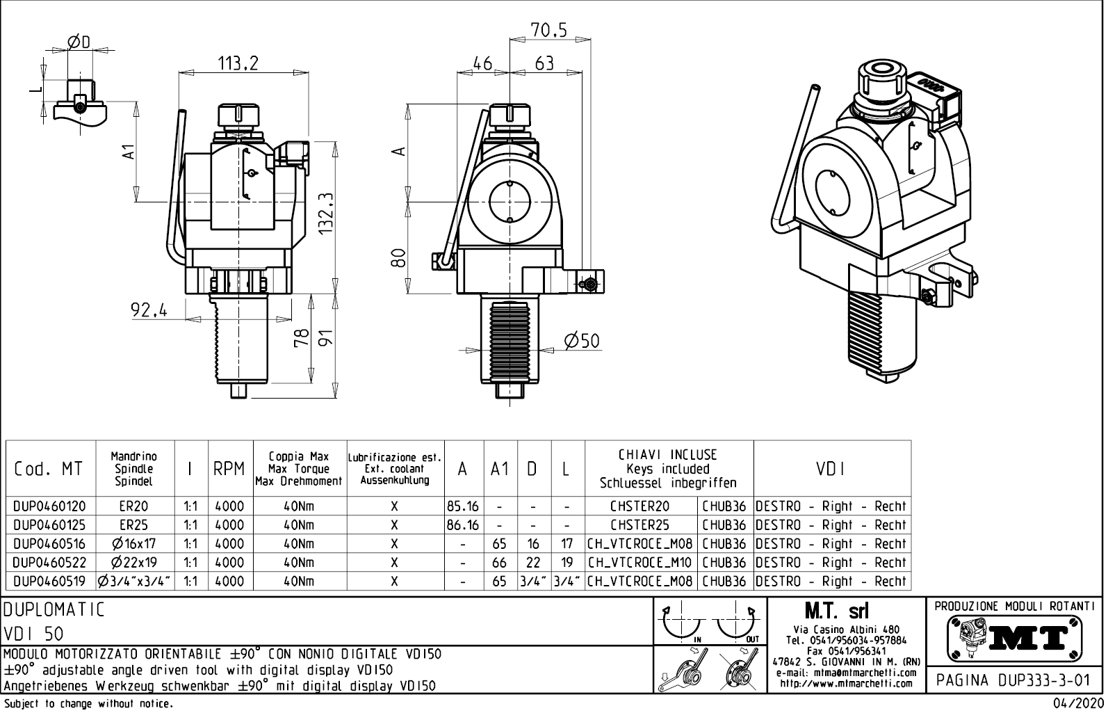 Úhlově nastavitelný rotační držák nástrojů pro stroje s nástrojovou hlavou VDI50.