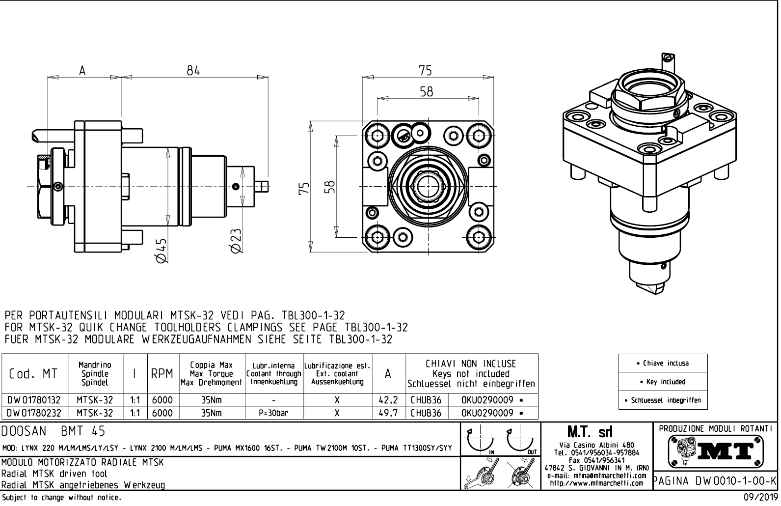 - upnutí nástroje pomocí: rychlovýměnného modulárního systému MTSK.