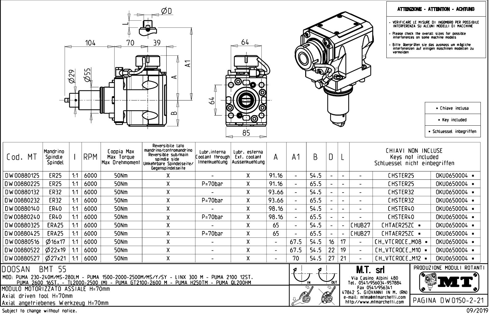 • Doosan - série PUMA 1500 / 2000 / 2500 M / MS / Y / SY