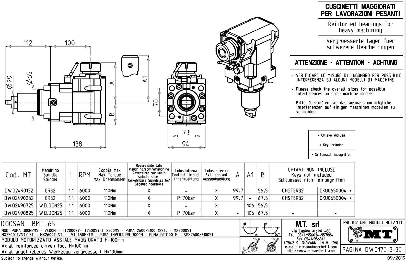 • Hyundai WIA (Kia) - série SKT160TTMS / SKT160TTSY / SKT180TTMS / SKT180TTSY