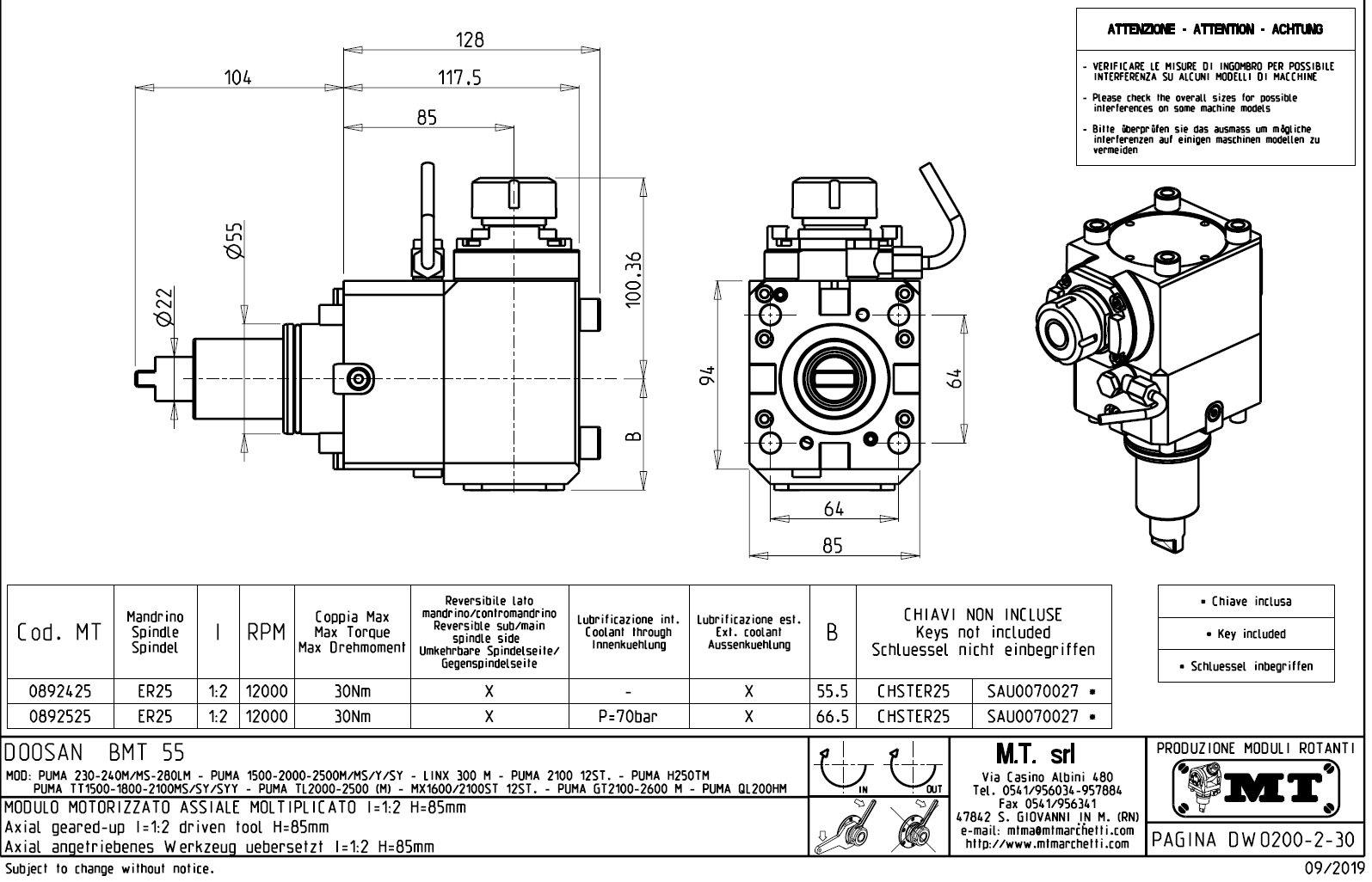 • Hyundai WIA (Kia) - série SKT160TTMS / SKT160TTSY / SKT180TTMS / SKT180TTSY