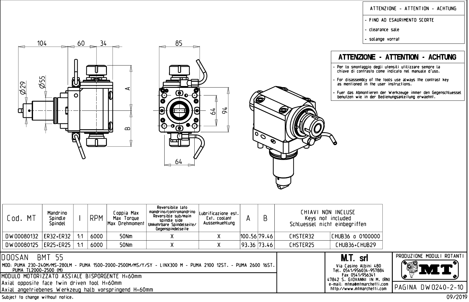 • Hyundai WIA (Kia) - série SKT160TTMS / SKT160TTSY / SKT180TTMS / SKT180TTSY