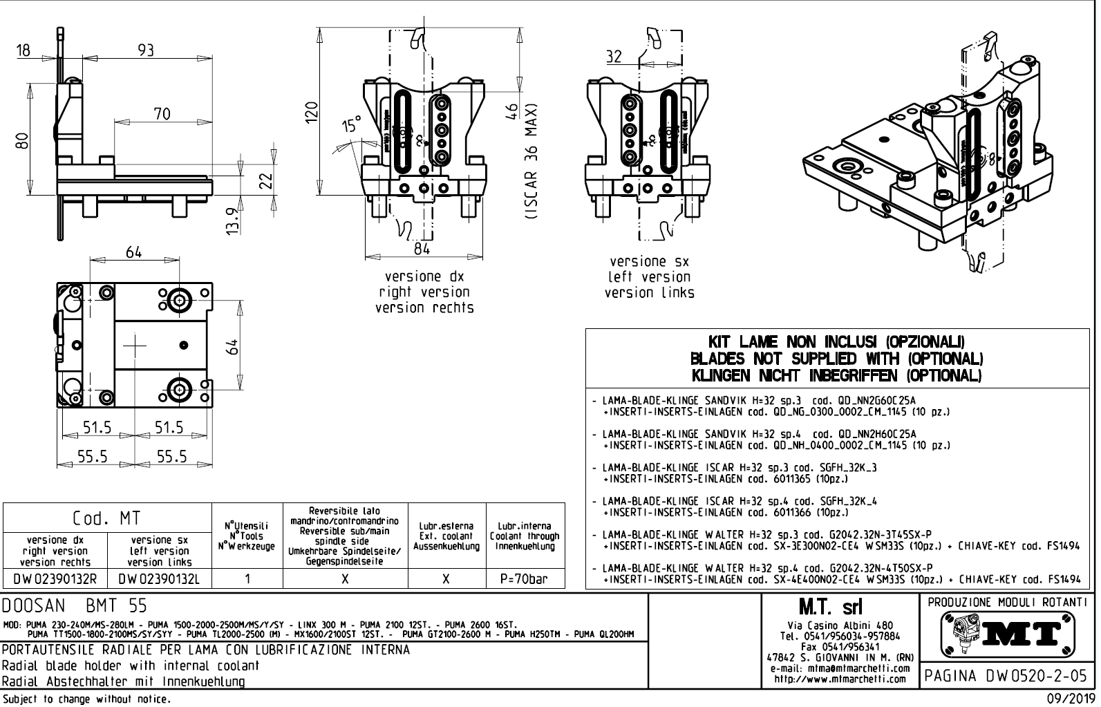 - Hyundai WIA (Kia) - série SKT160TTMS / SKT160TTSY / SKT180TTMS / SKT180TTSY