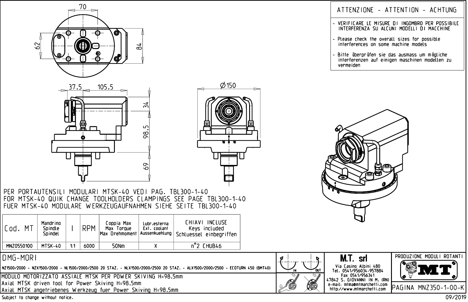 - upnutí nástroje pomocí: rychlovýměnného modulárního systému MTSK.