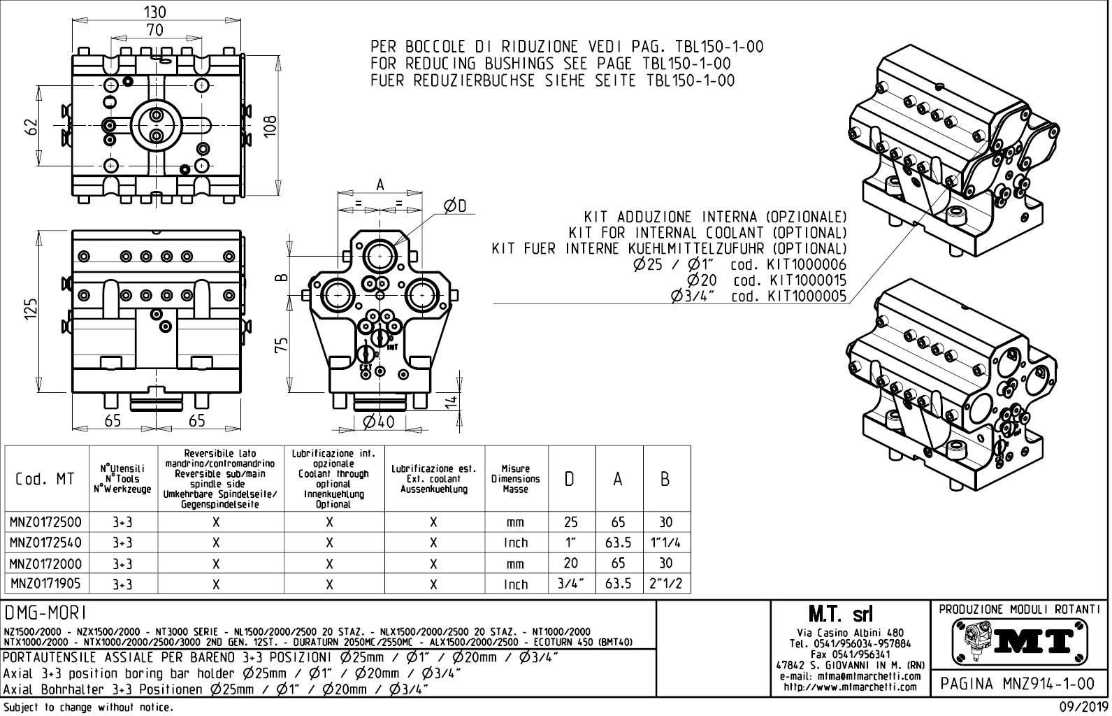 Axiální pevný, statický nástrojový držák pro stroje DMG Mori s nástrojovou hlavou BMT40