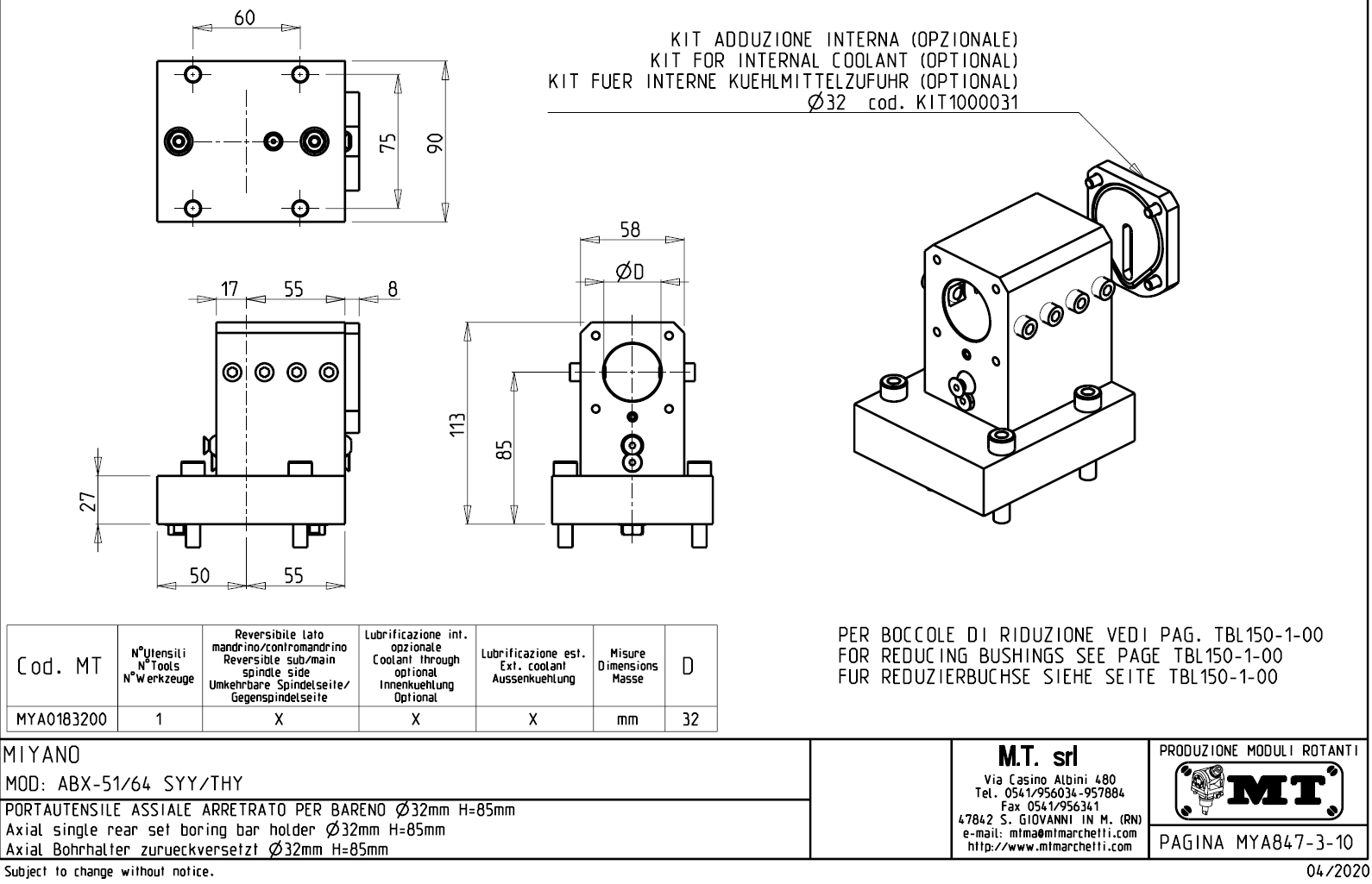 Radiální, pevný (statický) nástrojový držák pro stroje s nástrojovou hlavou typu BMT54.