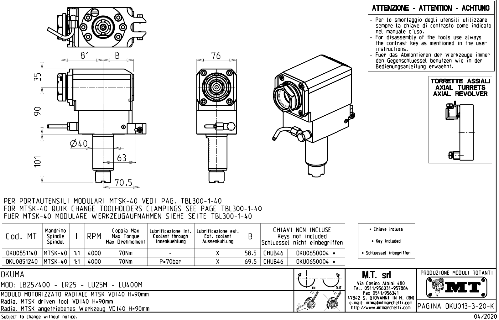 - Okuma - série LB 25 / 400