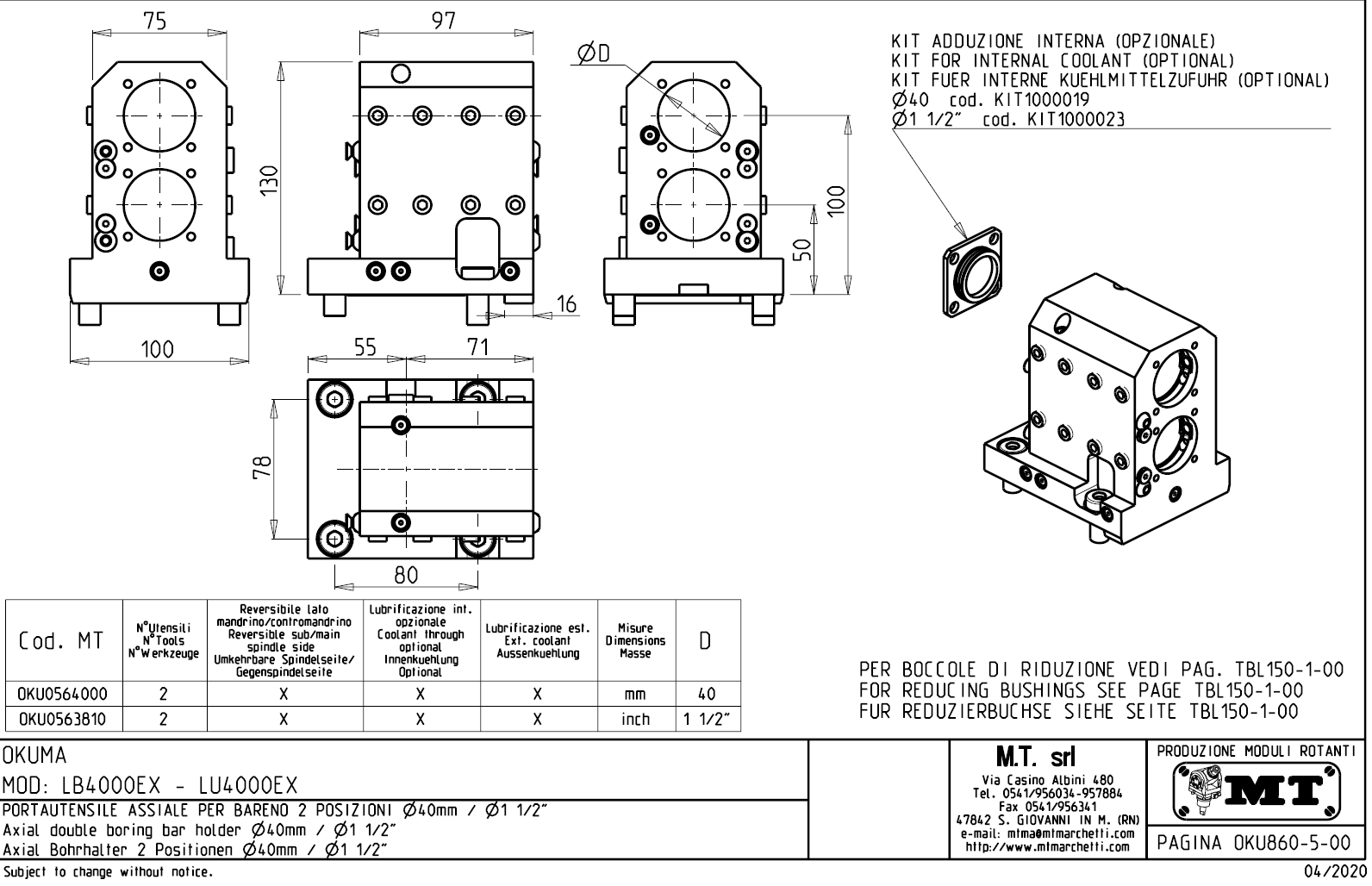 • pro použití vnitřního přívodu chladící kapaliny musí být použit zaslepovací kit, který není součástí standadní dodávky.