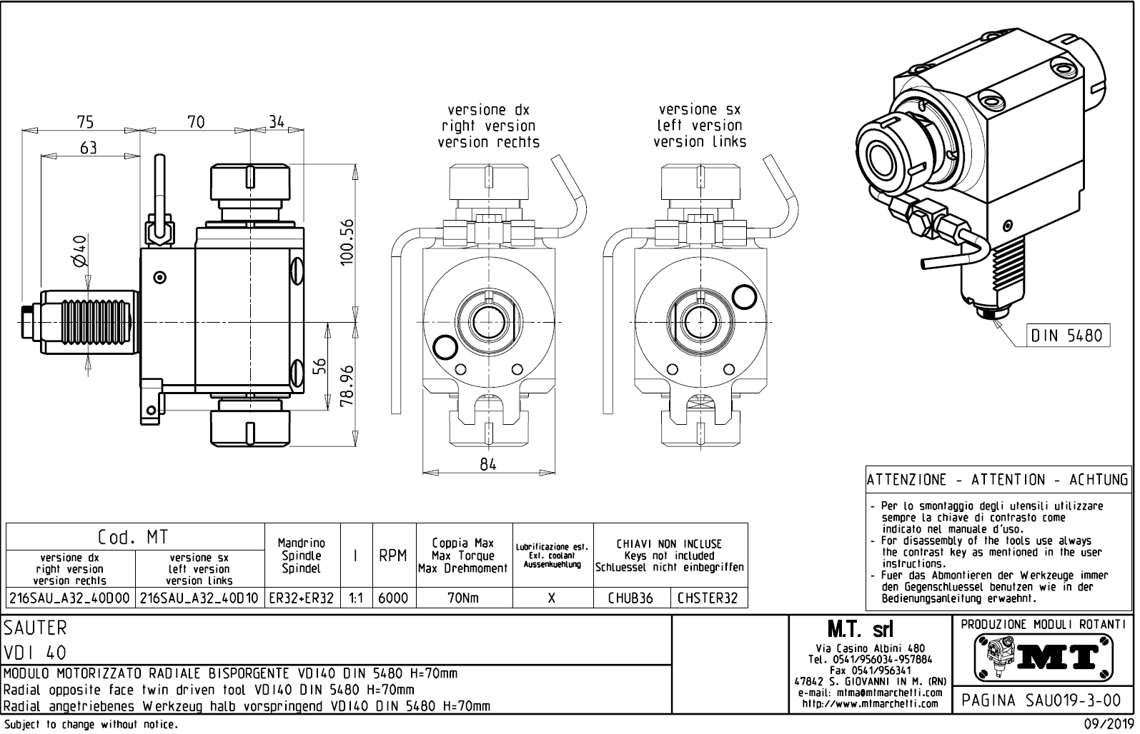 Radální rotační držák nástrojů pro stroje Sauter s nástrojovou hlavou VDI40.