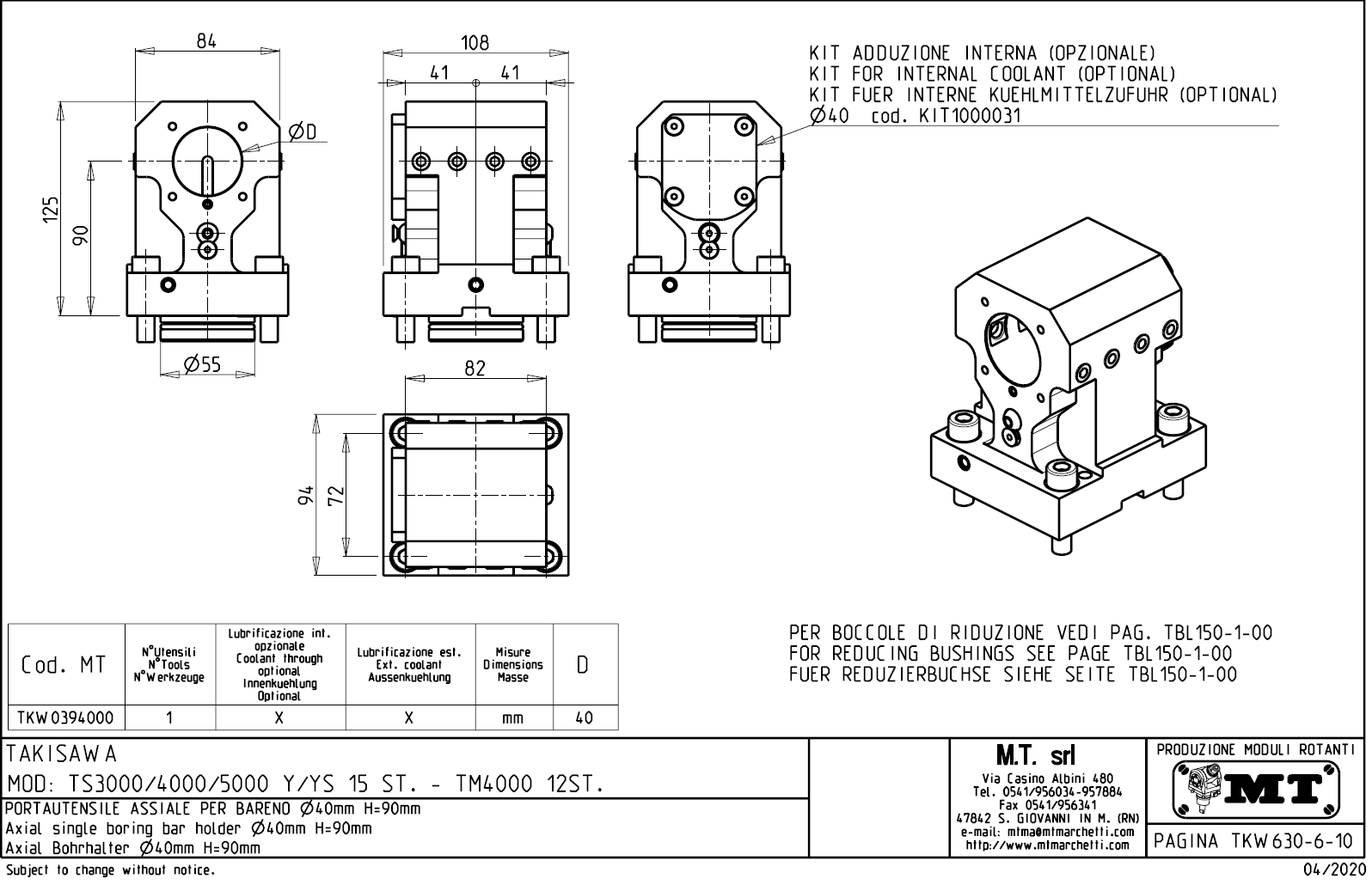 - pro použití vnitřního přívodu chladící kapaliny musí být použit zaslepovací kit, který není součástí standadní dodávky.