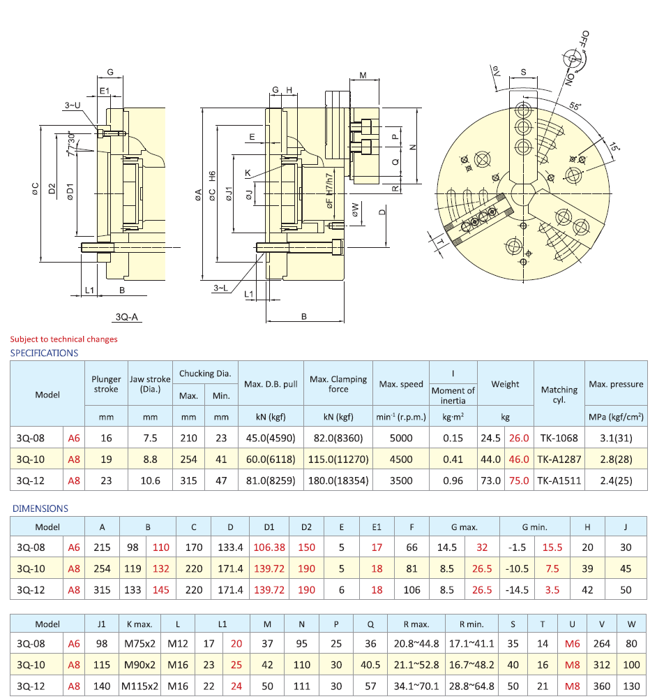 - 3 čelisťové sklíčidlo