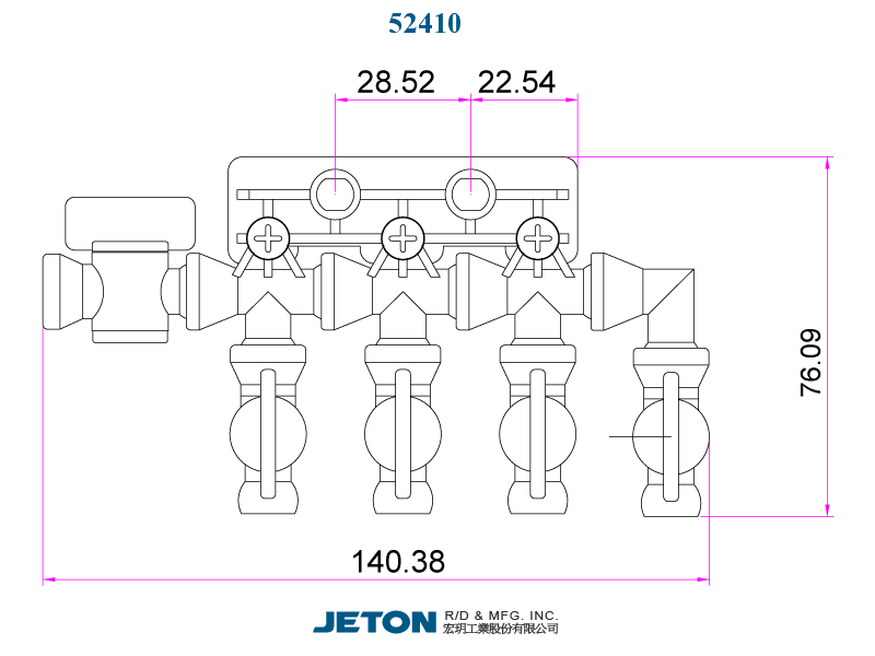 Systém potrubí hlavního řízení toku JETON o velikosti 1/4".