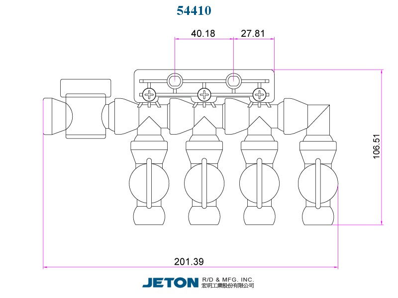 Systém potrubí hlavního řízení toku JETON o velikosti 1/2".