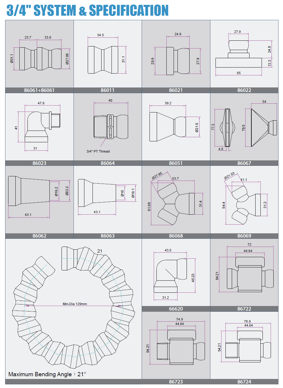 Sada flexibilní hadice 40cm JETON o velikosti 3/4".