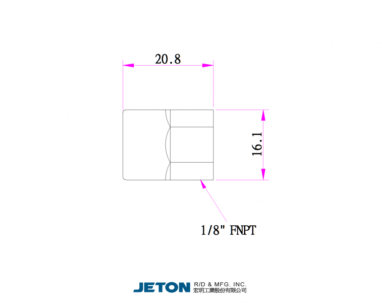 Objímka JETON o velikosti 1/4" na 1/8" NPT.