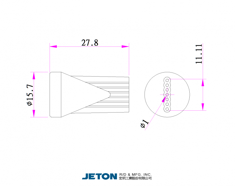 Tryska plochá 7 otvorů JETON o velikosti 1/4".