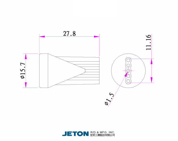 Tryska plochá 5 otvorů JETON o velikosti 1/4".