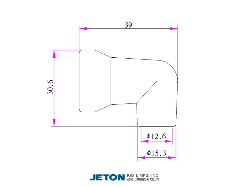Tryska 90° JETON o velikosti 1/2".