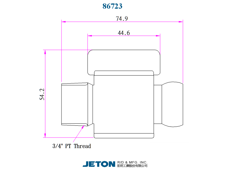 Ventil PT JETON o velikosti 3/4" - samec.