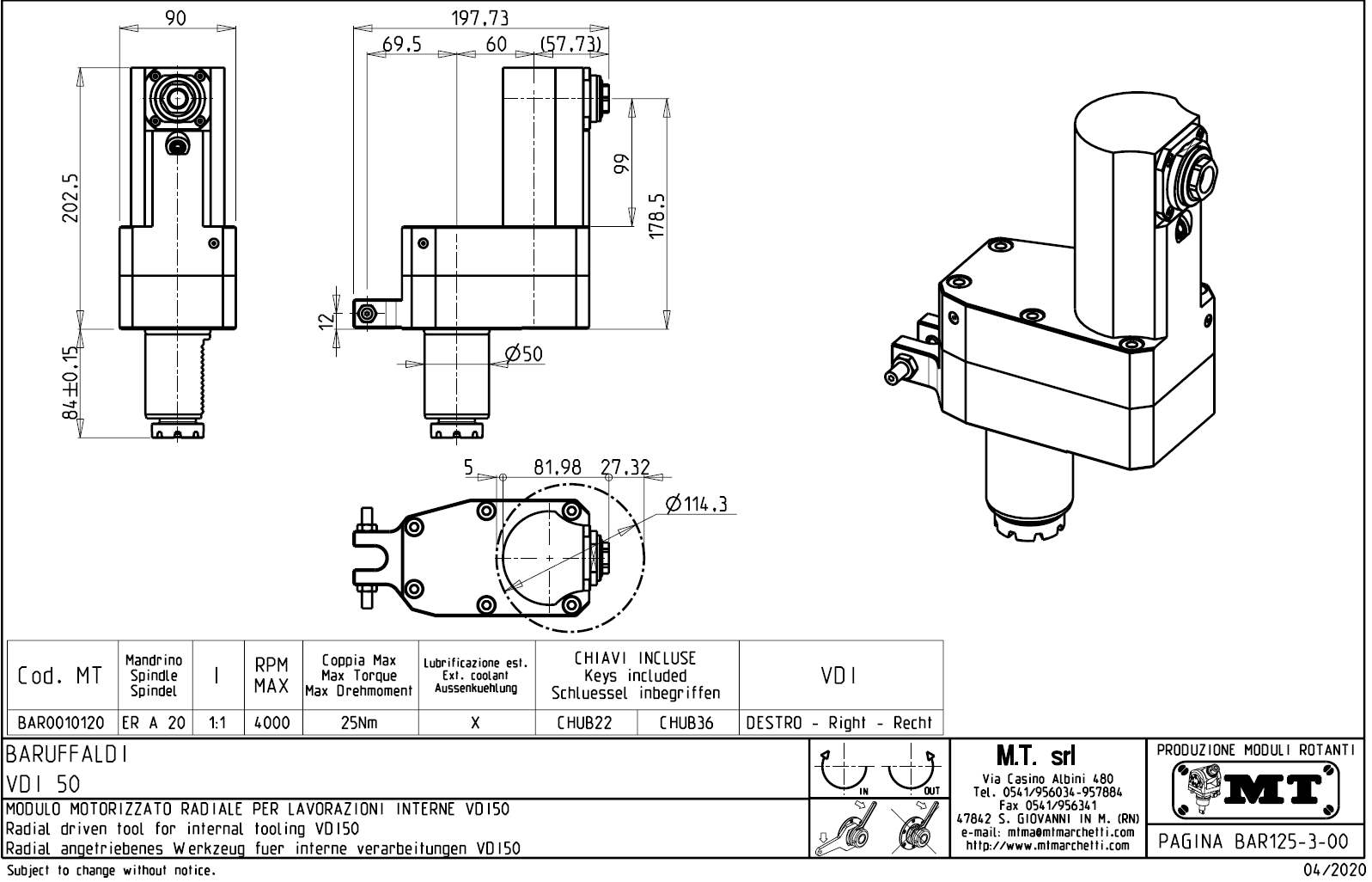 Radiální rotační držák nástrojů pro stroje s nástrojovou hlavou VDI50.