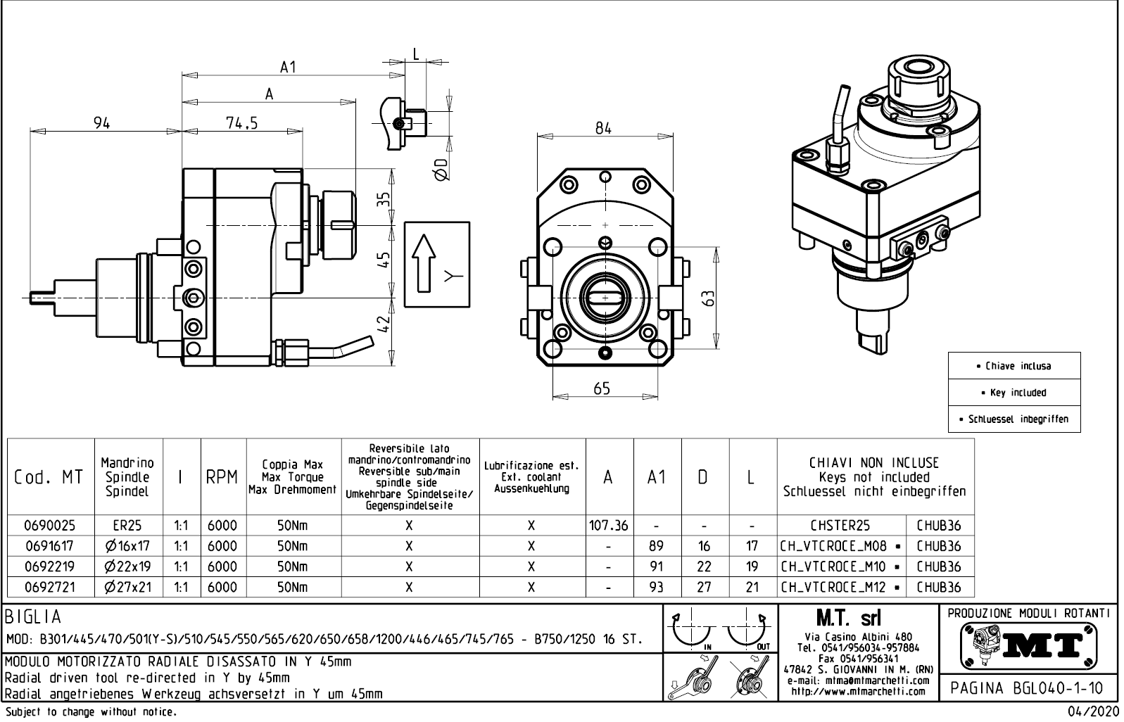 - Biglia - série BV 210 / 315