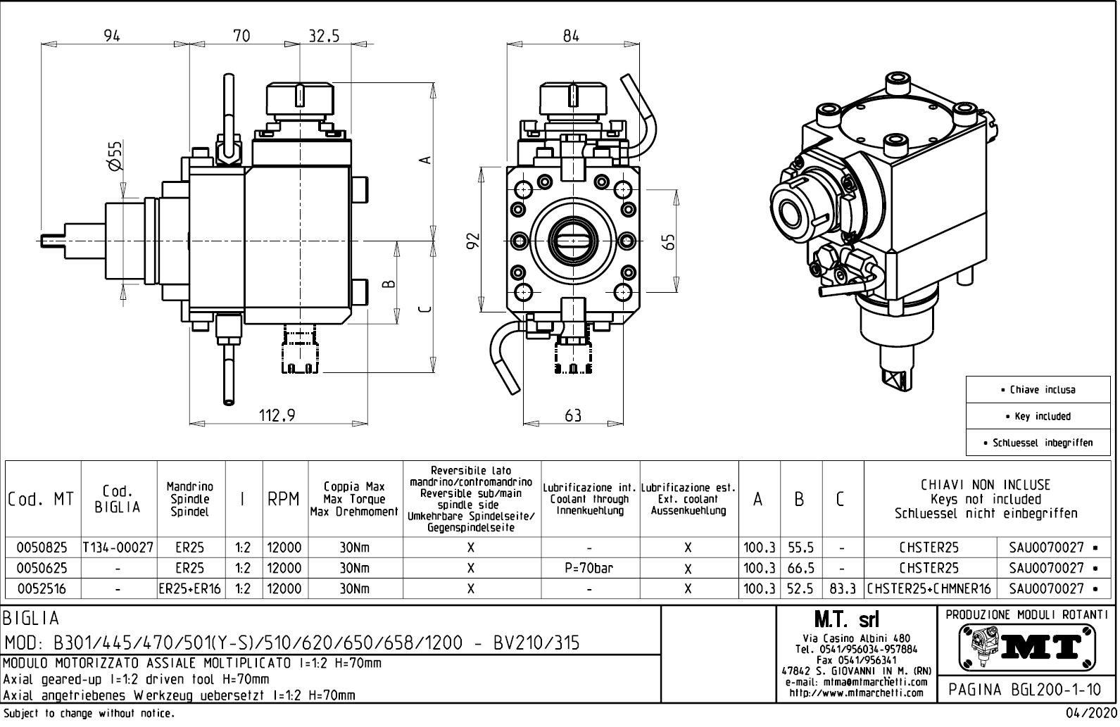 • Biglia - série BV 210 / 315