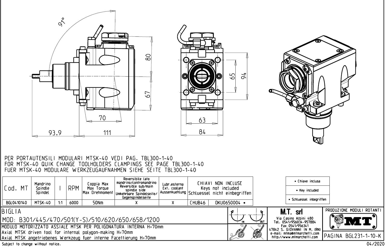 • upnutí nástroje pomocí: rychlovýměnného modulárního systému MTSK.