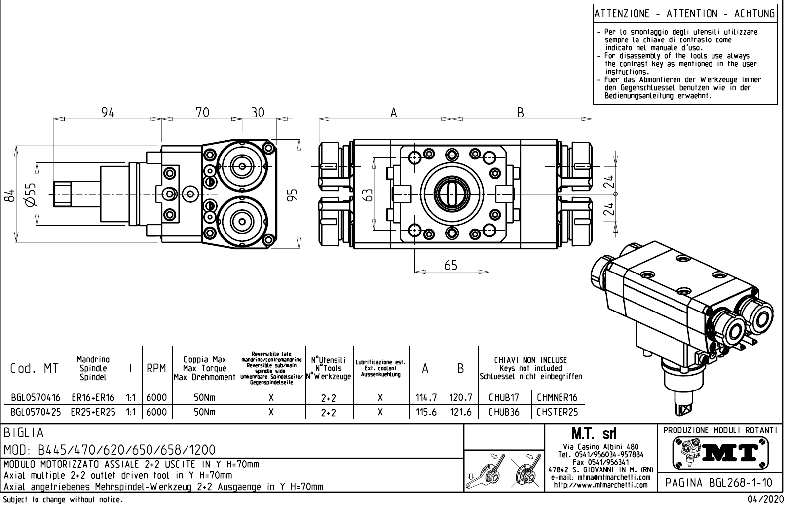 Axiální rotační držák nástrojů pro stroje s nástrojovou hlavou BMT55.