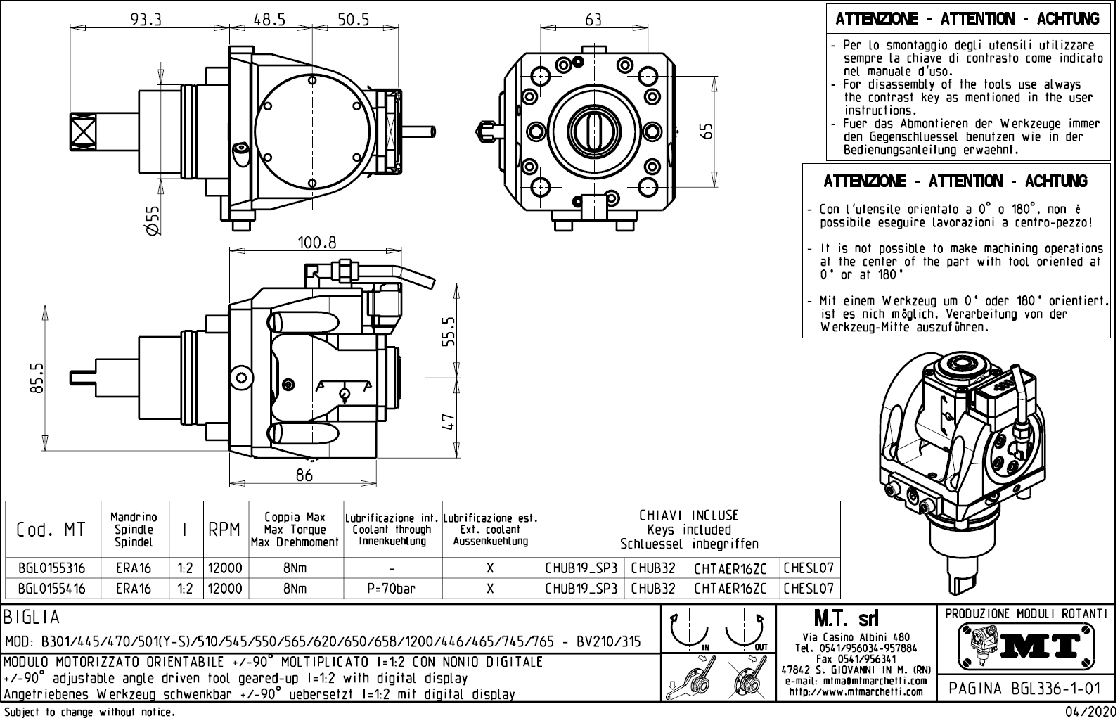 Úhlově nastavitelný rotační držák nástrojů pro stroje s nástrojovou hlavou BMT55.