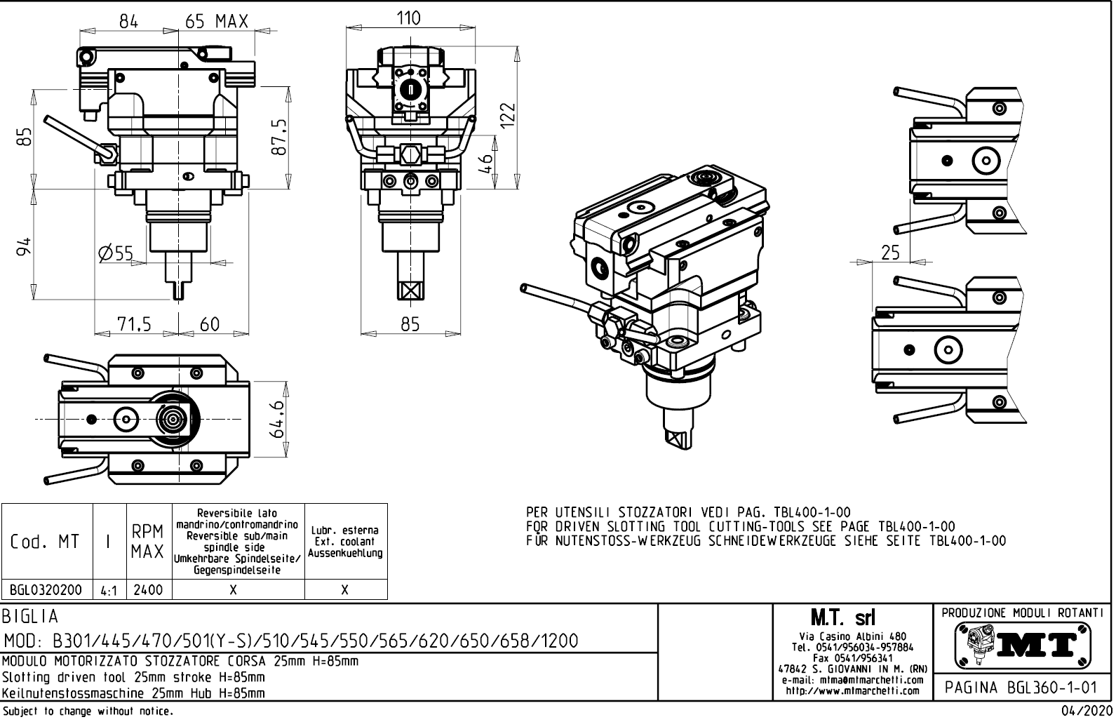 Rotační držák nástrojů pro obrábění drážek pro stroje s nástrojovou hlavou BMT55.