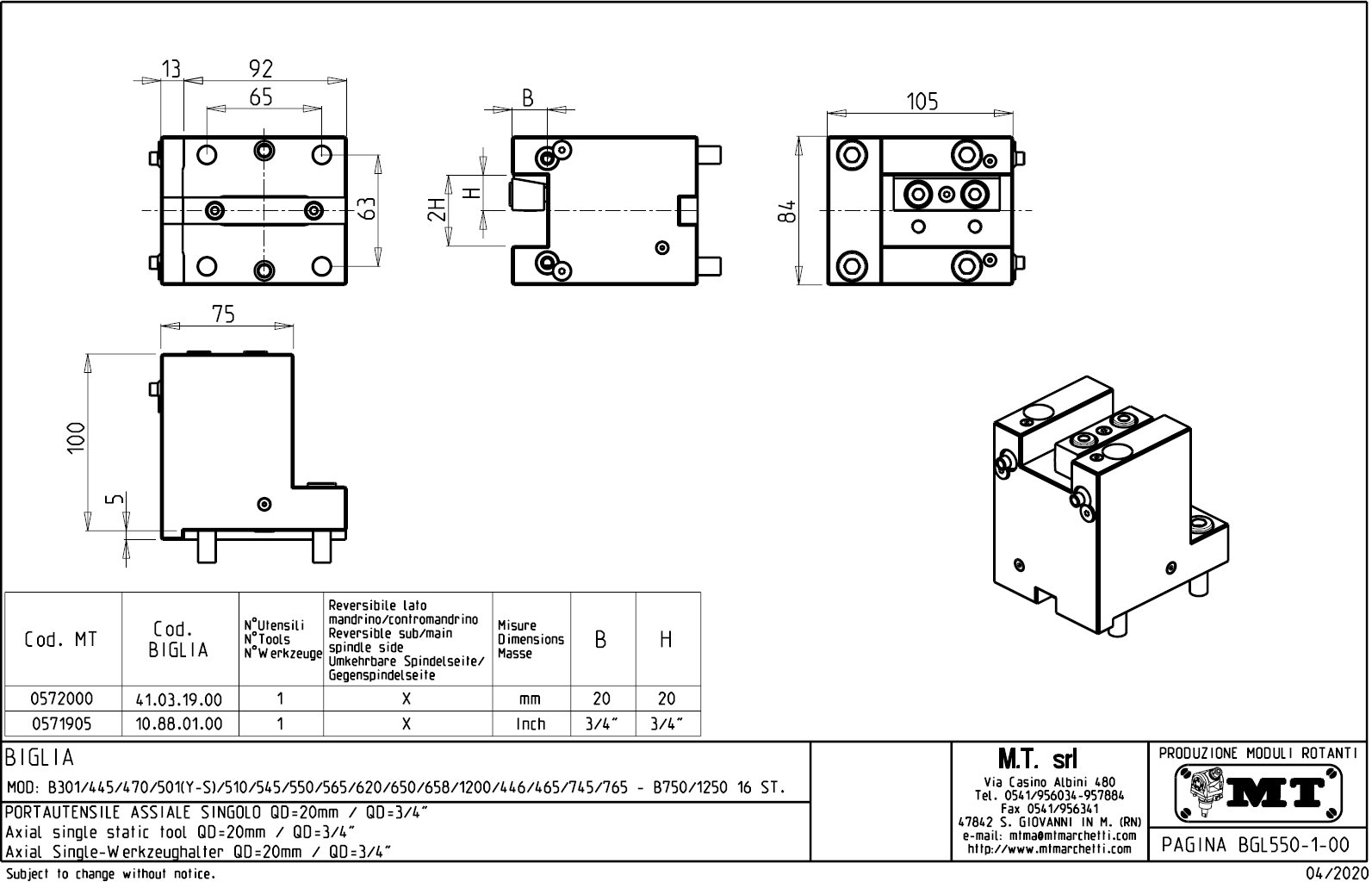 Axiální, pevný (statický) nástrojový držák pro stroje s nástrojovou hlavou typu BMT55.