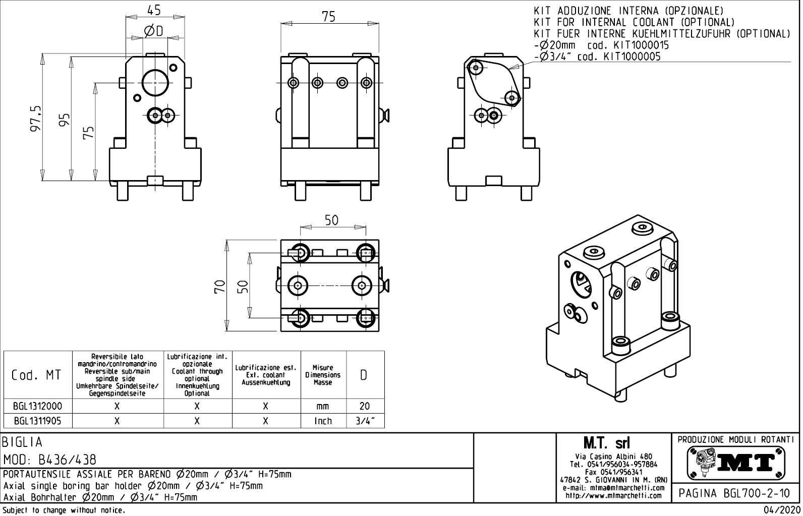 Axiální, pevný (statický) nástrojový držák pro stroje s nástrojovou hlavou typu BMT40.
