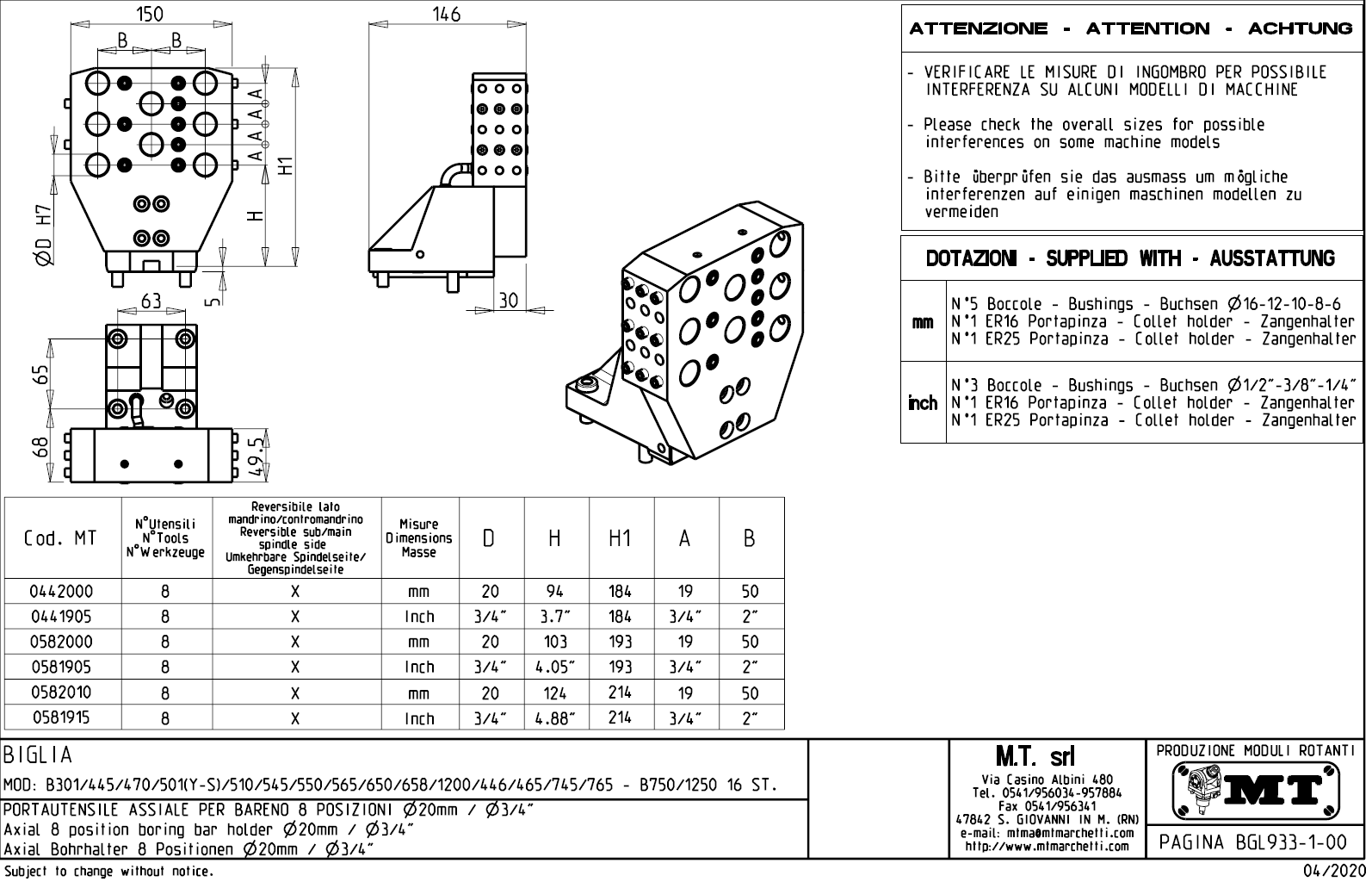 - Biglia - série BV 210 / 315