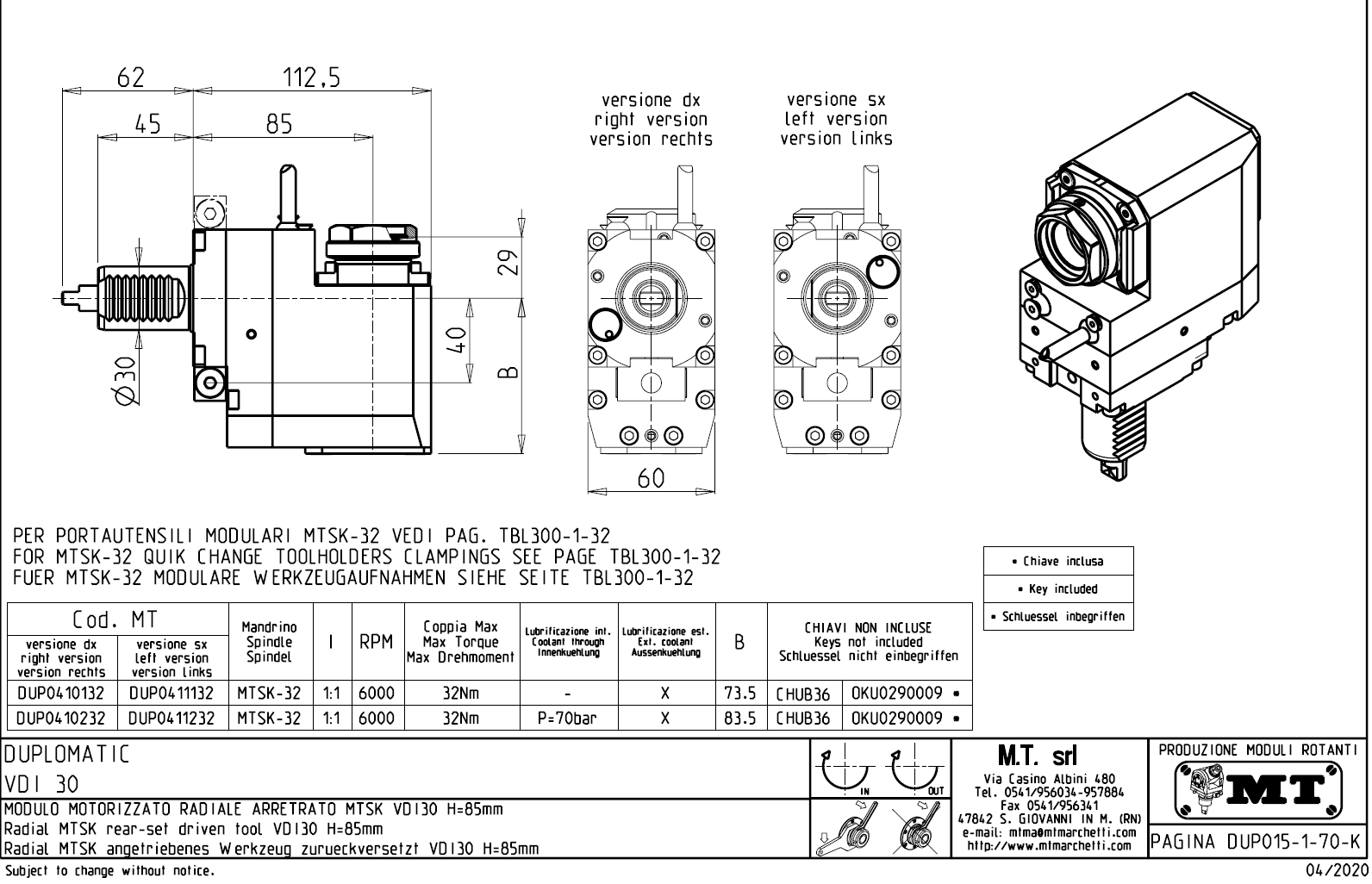 - upnutí nástroje pomocí: rychlovýměnného modulárního systému MTSK.