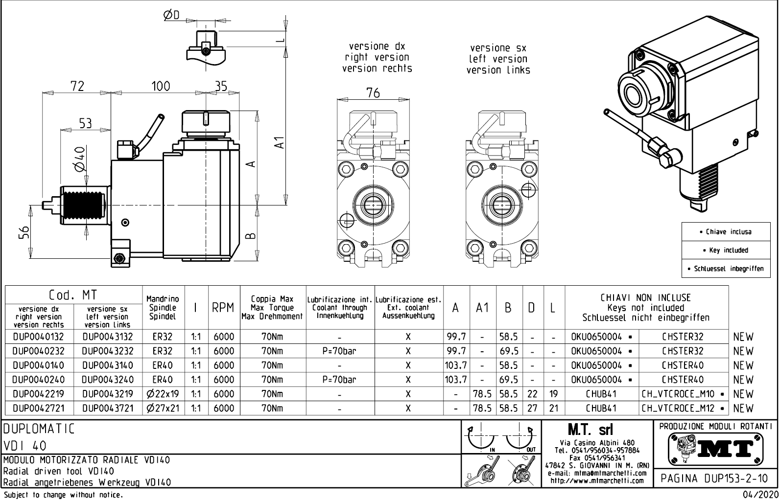 - vnitřní (max.70bar) a venkovní přívod řezné kapaliny.