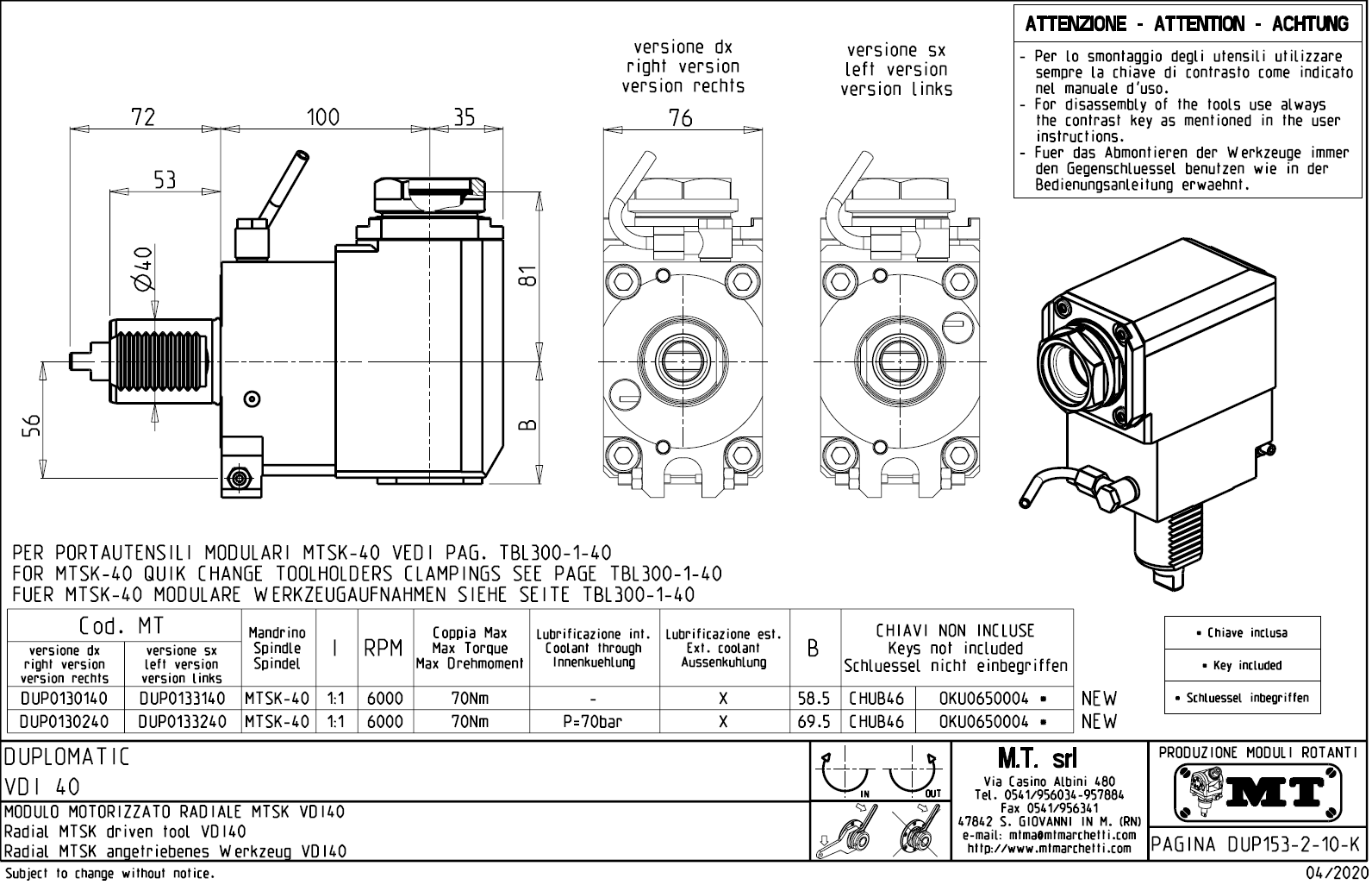 - upnutí nástroje pomocí: rychlovýměnného modulárního systému MTSK.