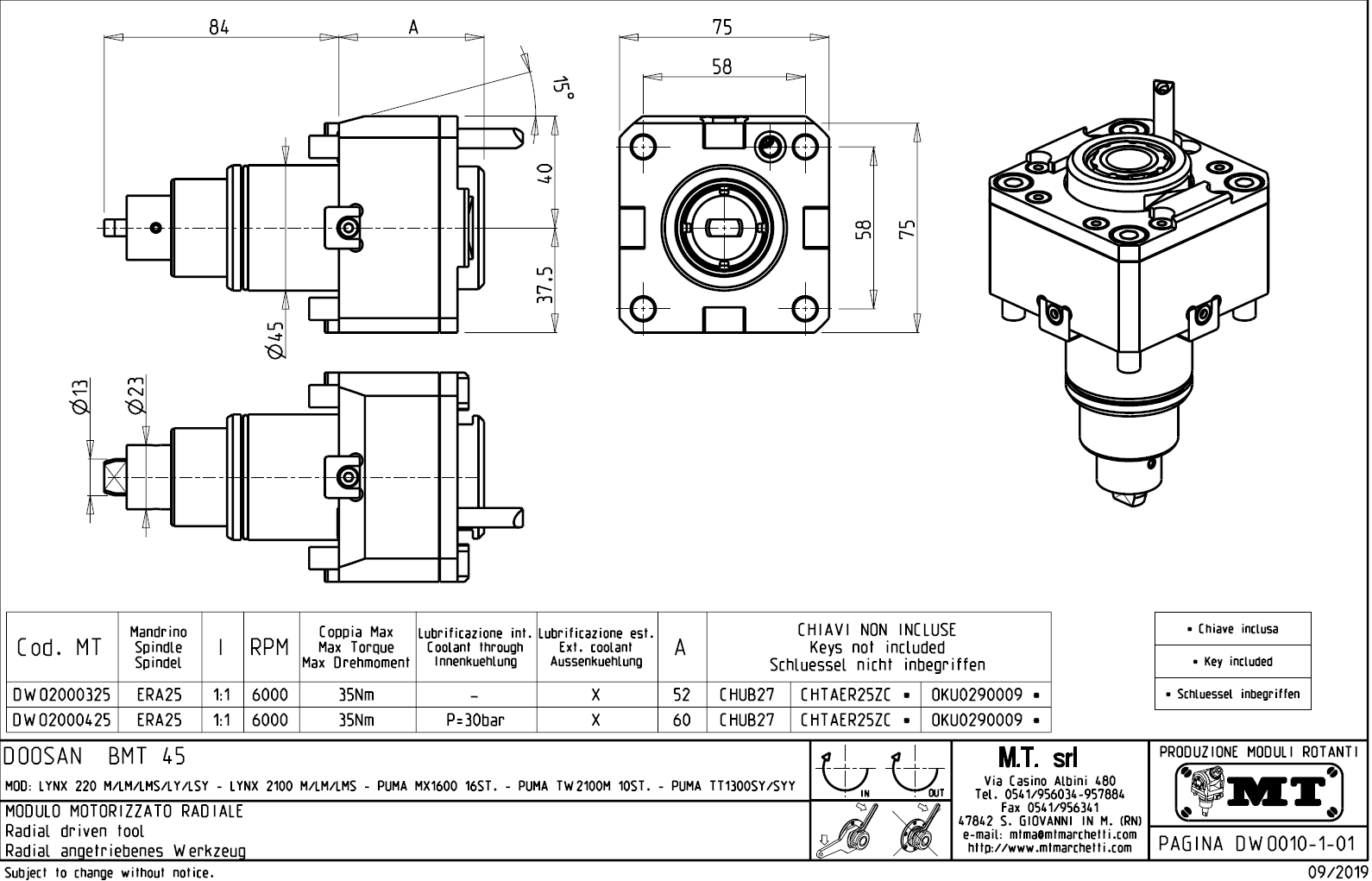 - vnitřní (max.30bar) a venkovní přívod řezné kapaliny.