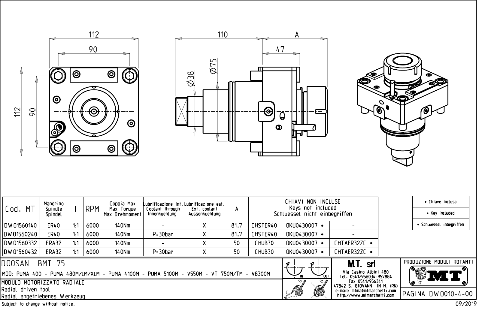 - vnitřní (max.30bar) a venkovní přívod řezné kapaliny.