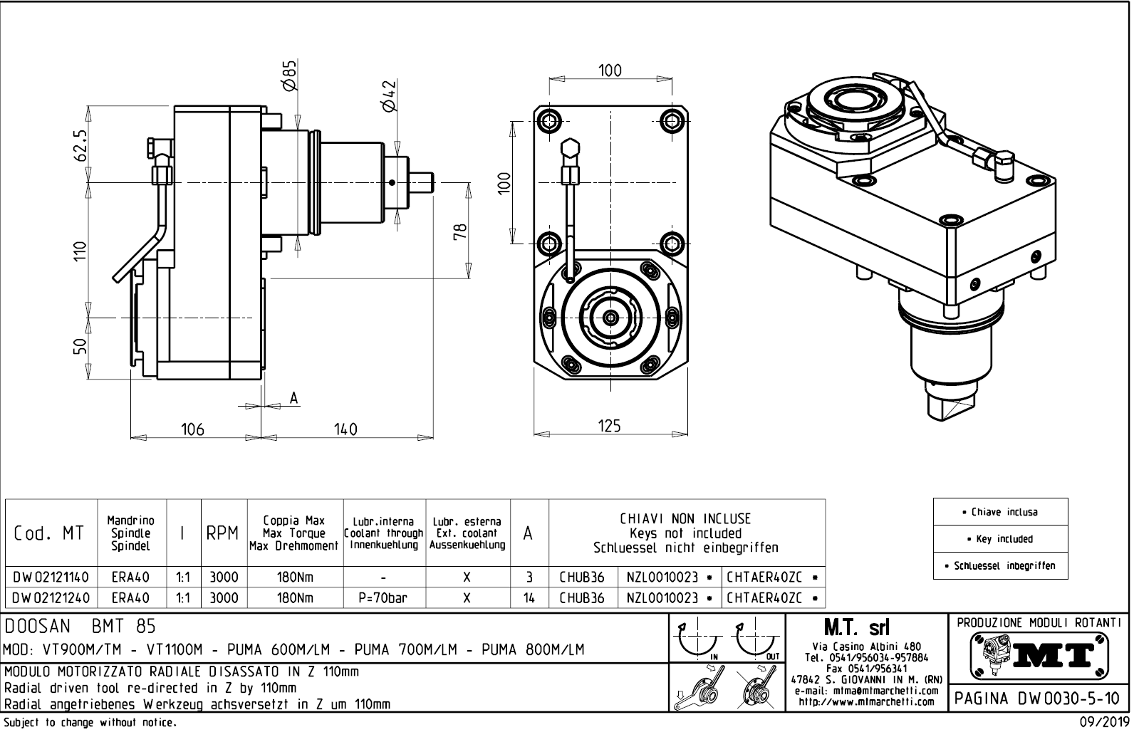 - vnitřní (max.70bar) a venkovní přívod řezné kapaliny.
