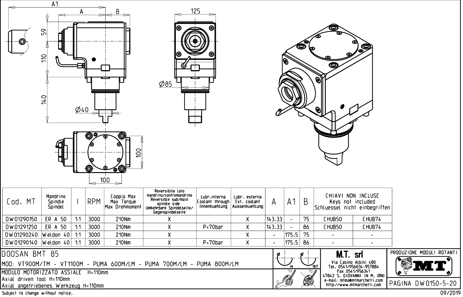 - vnitřní (max.70bar) a venkovní přívod řezné kapaliny.