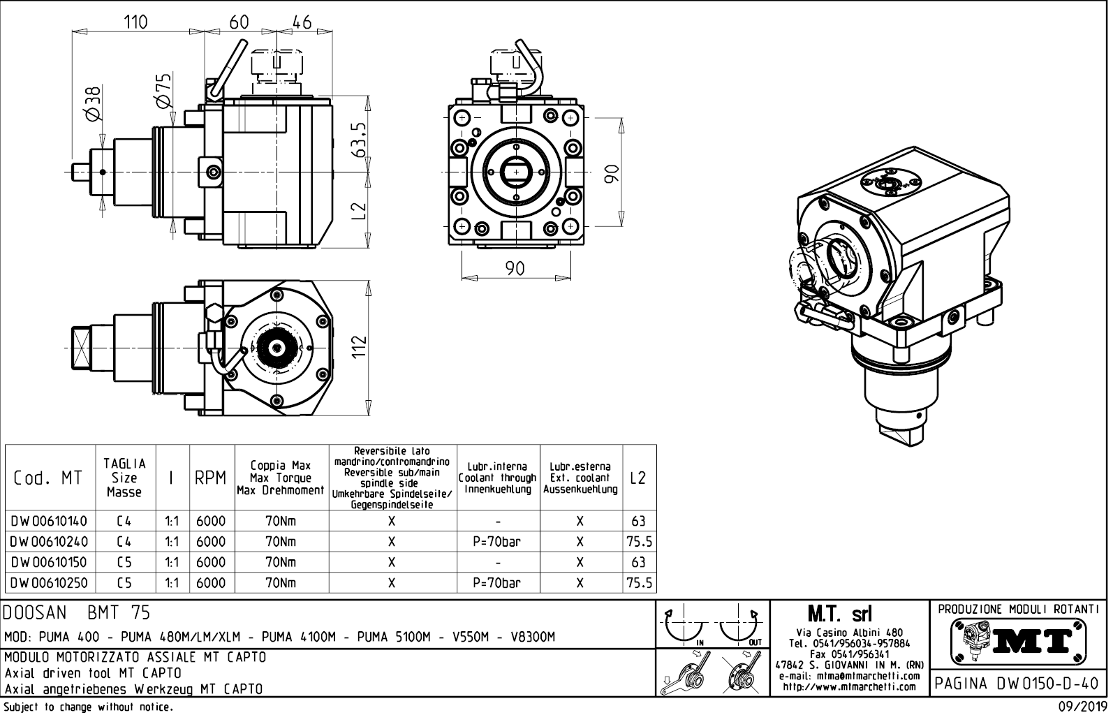 - vnitřní (max.70bar) a venkovní přívod řezné kapaliny.