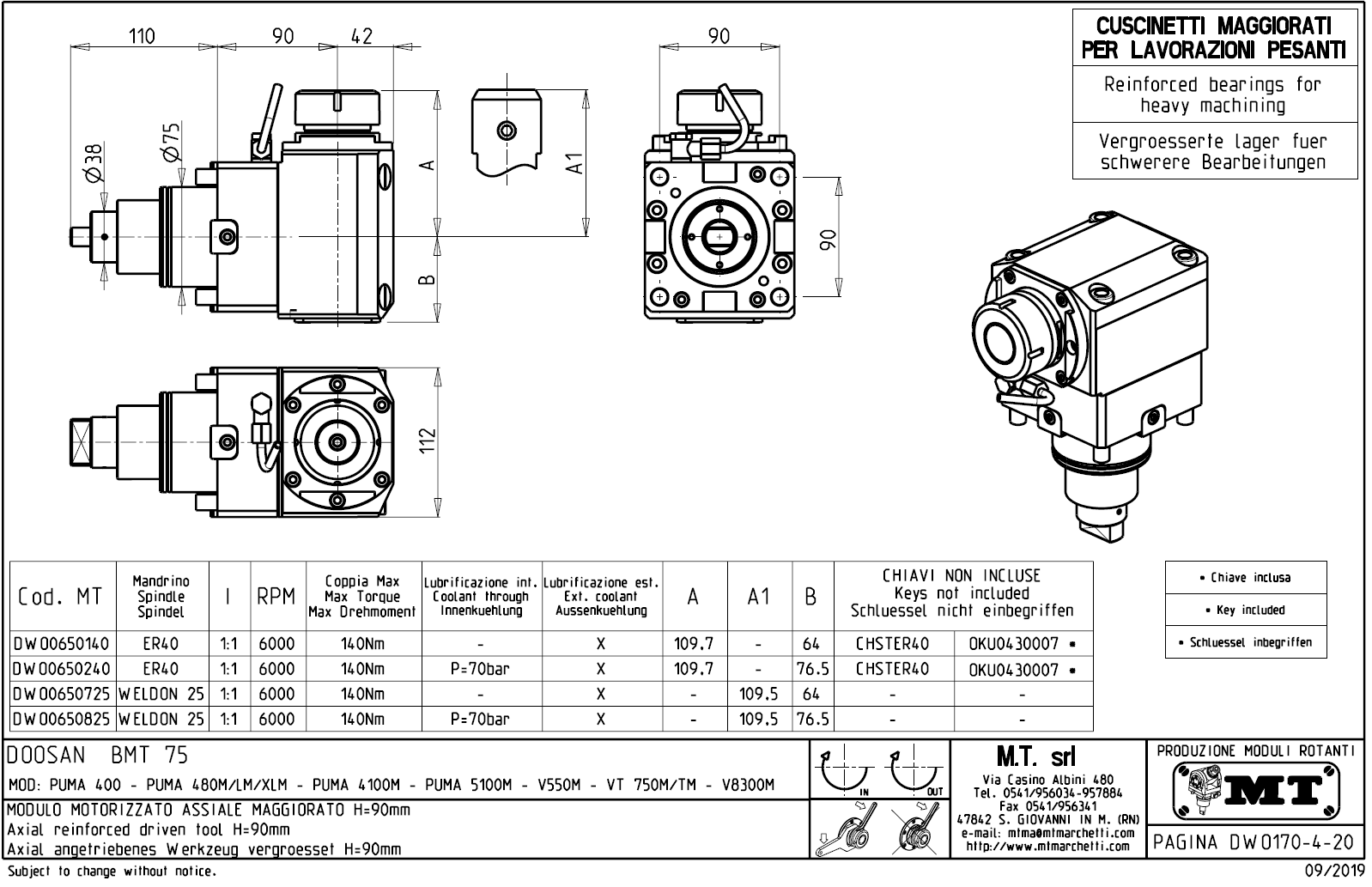 - vnitřní (max.70bar) a venkovní přívod řezné kapaliny.