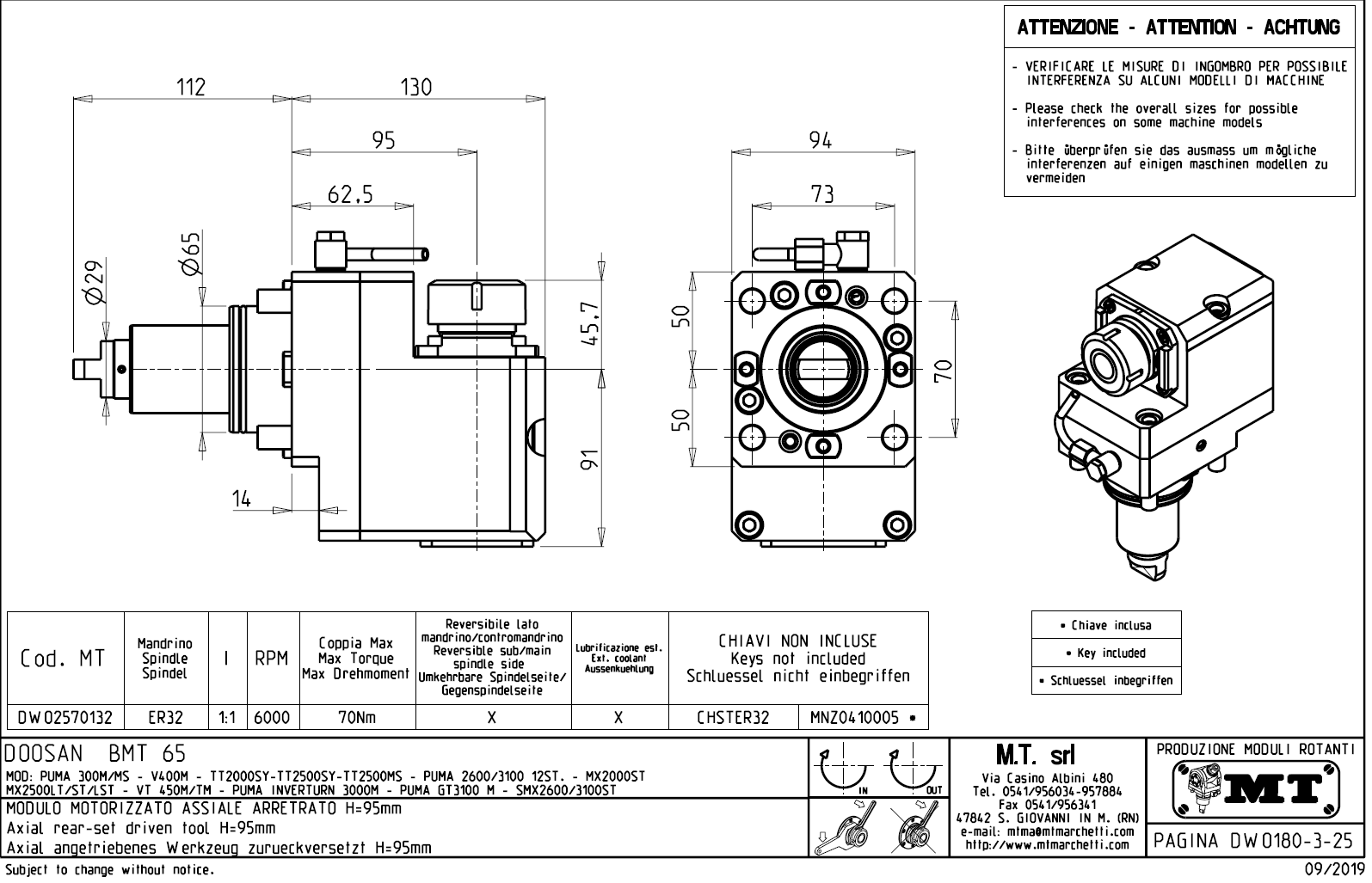 - Hyundai WIA (Kia) - série SKT160TTMS / SKT160TTSY / SKT180TTMS / SKT180TTSY