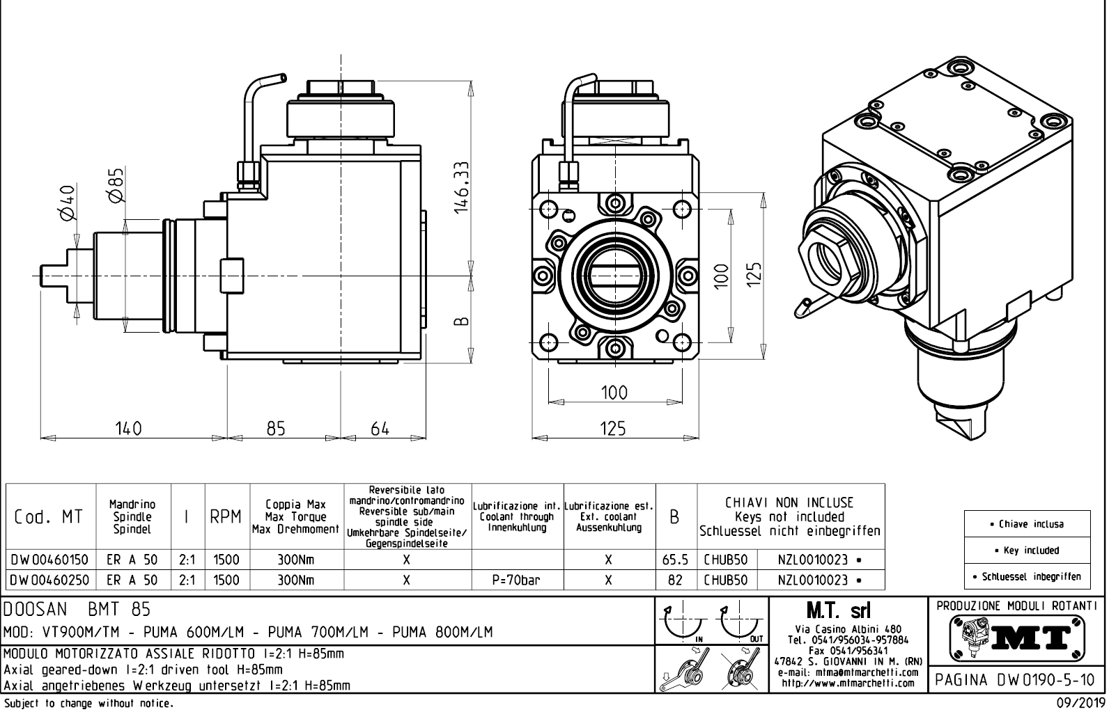 Axiální rotační držák nástrojů pro stroje Doosan s nástrojovou hlavou BMT85.