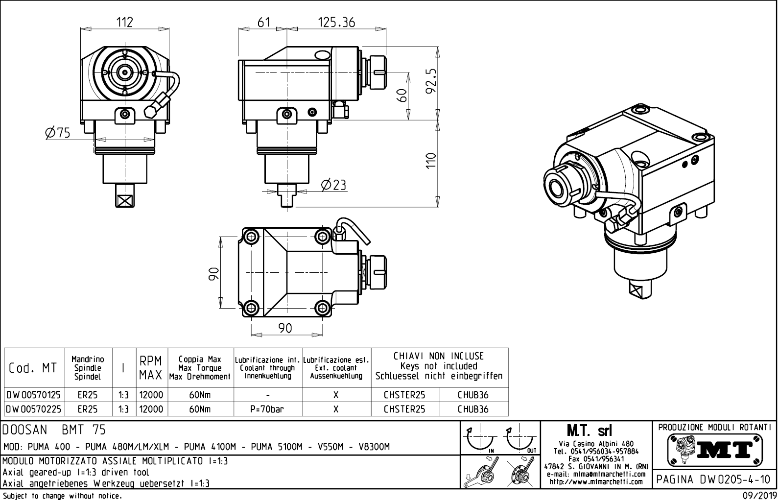 - vnitřní (max.70bar) a venkovní přívod řezné kapaliny.
