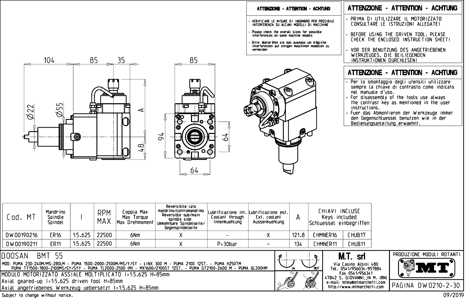 • Hyundai WIA (Kia) - série SKT160TTMS / SKT160TTSY / SKT180TTMS / SKT180TTSY