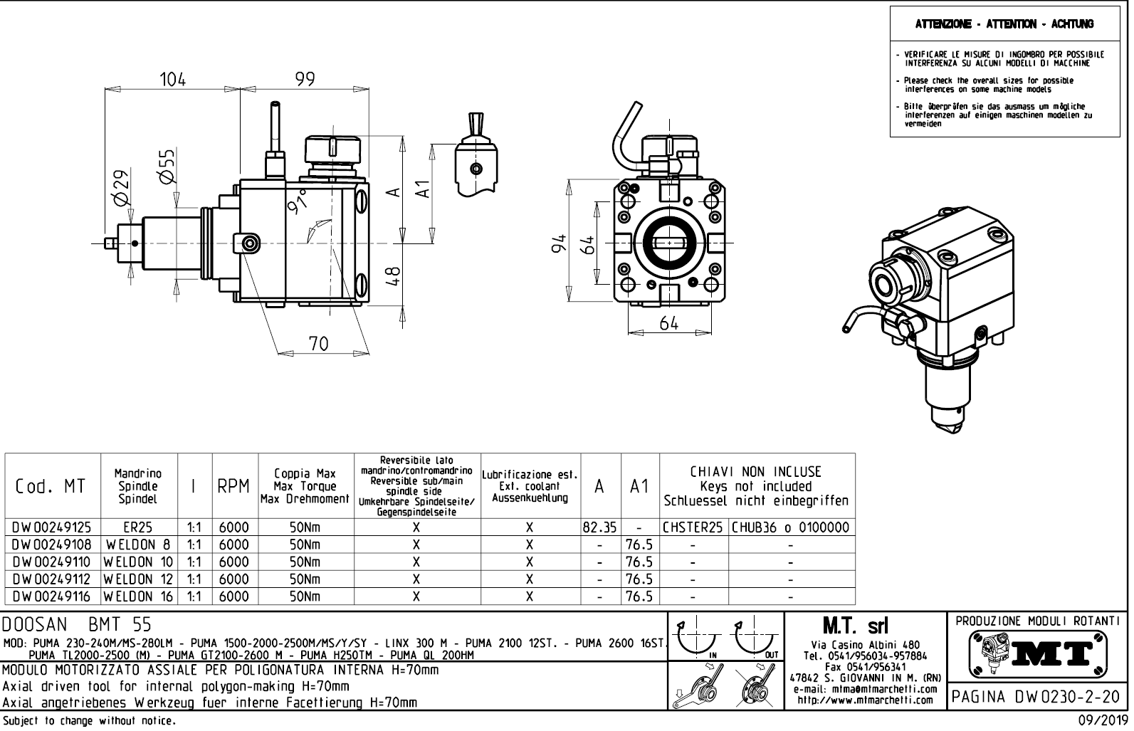 • Doosan - série PUMA 1500 / 2000 / 2500 M / MS / Y / SY