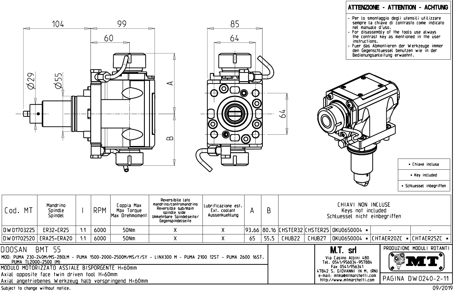 • Hyundai WIA (Kia) - série SKT160TTMS / SKT160TTSY / SKT180TTMS / SKT180TTSY
